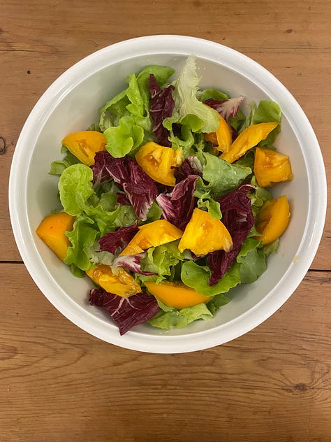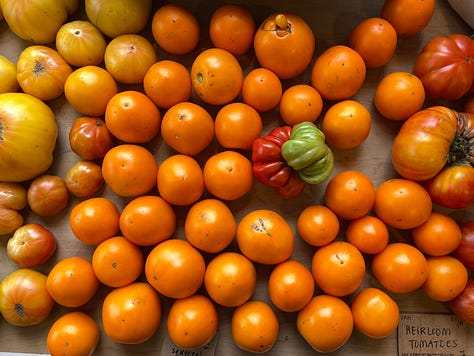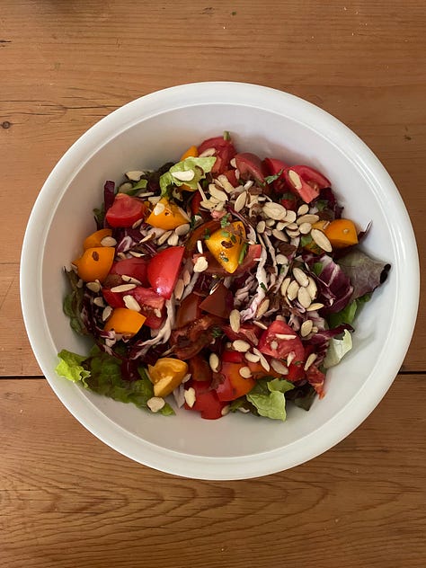 In theme with today’s newsletter, I’ve been leaning into the overlap of late summer/early fall produce. Due to this summer’s weather and rain patterns in New England this year, the tomatoes came in later than usually, which means we can still enjoy their juicy loveliness well into October! Yum.